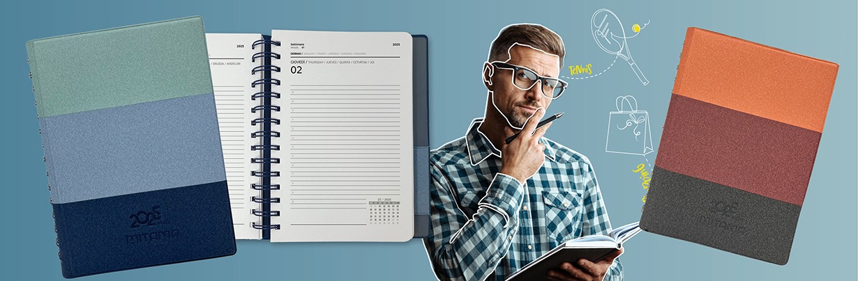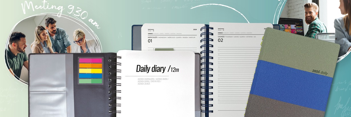 Hai bisogno di un’agenda funzionale e stilosa? Le nostre agende giornaliere spiralate con copertina flessibile sono perfette per te! Offrono ampio spazio per appuntamenti e appunti, e la spirale consente una gestione semplice e veloce. Con contenuti extra che arricchiscono ogni giorno, queste agende non solo organizzano ma rendono anche piacevole la pianificazione.