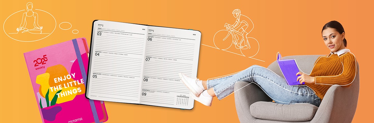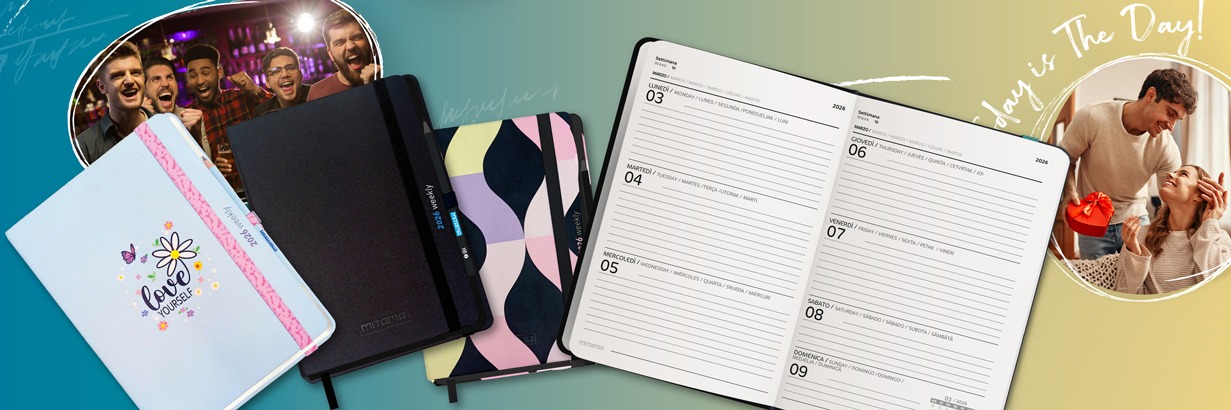 Scopri le agende giornaliere MITAMA ELEGANCE: con la loro cover in ecopelle chic, ricche di contenuti extra e accessoriate, sono lo strumento perfetto per chi ama organizzarsi con stile! Ogni giorno ha la sua pagina dedicata per 12 mesi, così puoi annotare appuntamenti e appunti senza mai restare a corto di spazio. Pronte a dare una marcia in più alla tua routine!