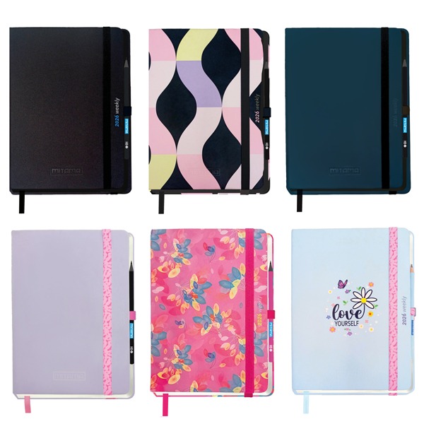 Le agende settimanali MITAMA uniscono colori vivaci e design accattivanti a una praticità senza pari. Perfette per organizzare le tue settimane con stile, queste agende offrono un’esperienza divertente e creativa grazie ai contenuti extra e a una varietà di accessori inclusi. Ideali per chi cerca funzionalità, allegria e un tocco di originalità in un unico prodotto.