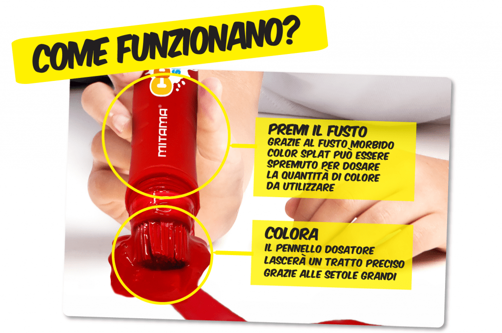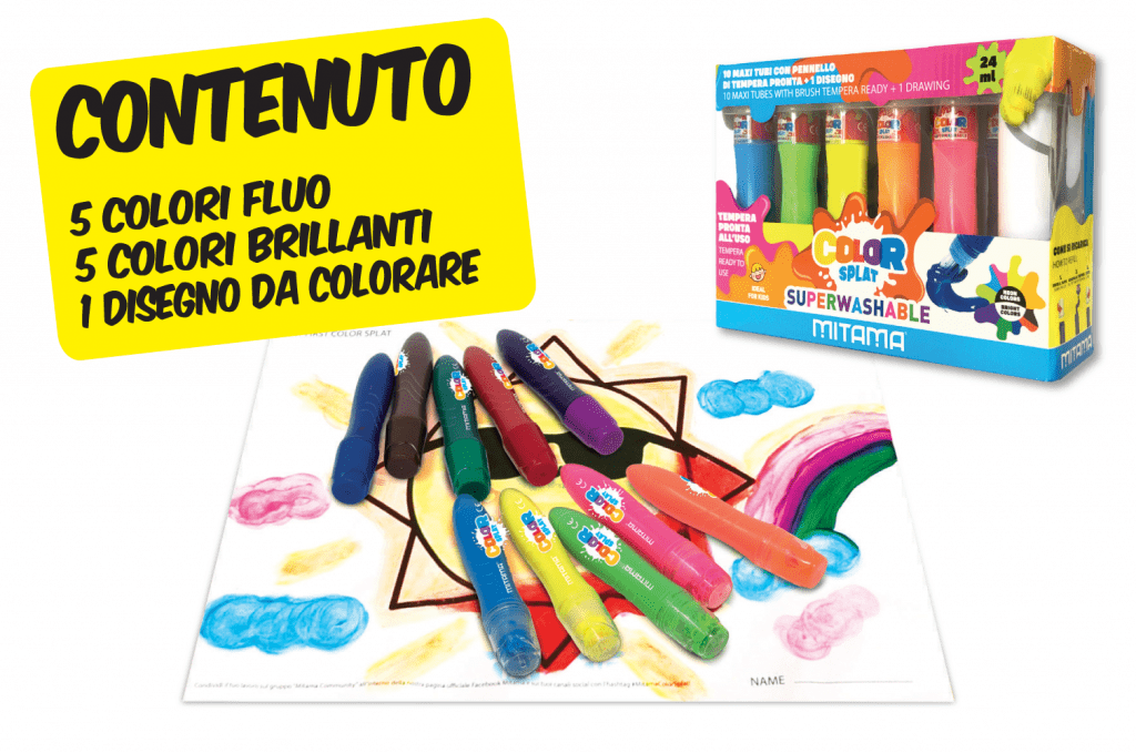 I Color Splat sono le nuove tempere Mitama super colorate e pronte all’uso per far esplodere tutta la tua creatività con fantastici colori! Inoltre sono anche superlavabili da mani e tessuti per la gioia dei grandi e dei più piccini!