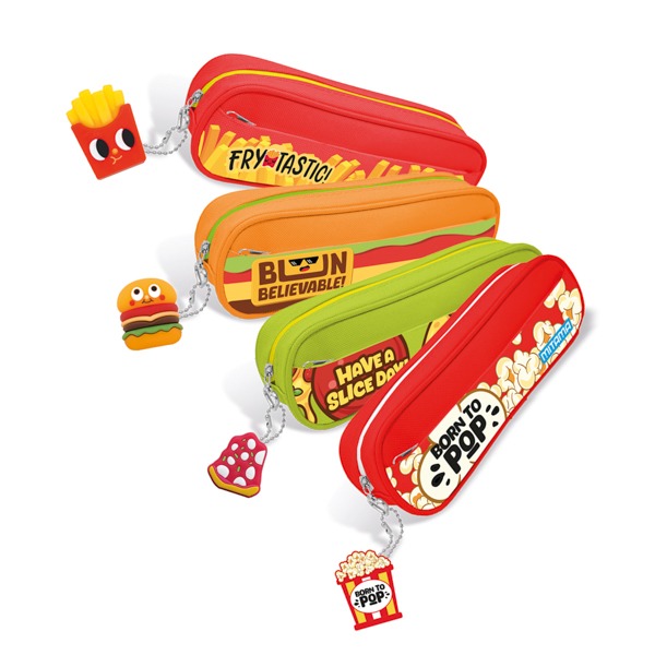 Hamburger, patatine, pizza, popcorn e bibite diventano protagonisti di articoli di cancelleria dal design accattivante, perfetti da collezionare, regalare o portare a scuola.