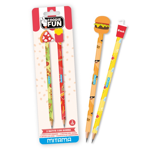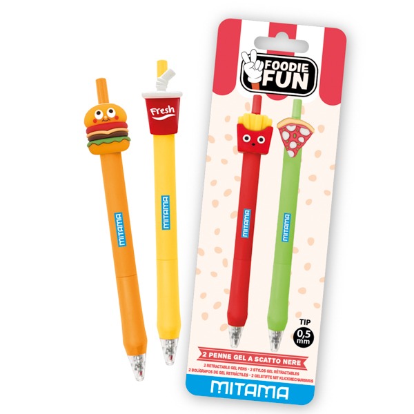 Hamburger, patatine, pizza, popcorn e bibite diventano protagonisti di articoli di cancelleria dal design accattivante, perfetti da collezionare, regalare o portare a scuola.
