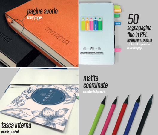 Logo Impresso, Nuovo Tessuto in Ecopelle, Stampa Logo in coordinato con le pagine Avorio.