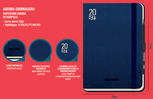 Agenda Giornaliera, con copertina rigida in Ecopelle. Carta Avorio 80gr.
