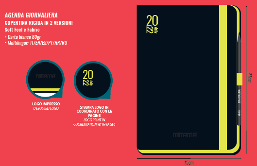 Agenda giornaliera con Copertina in materiale Soft Touch, Carta Bianca 80gr.