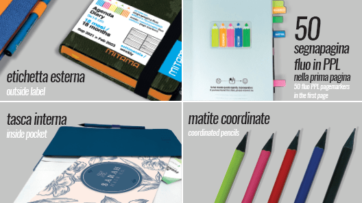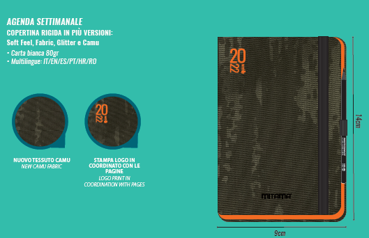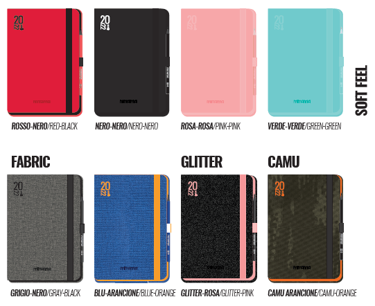 Copertina rigida in più versioni per questo formato: Soft Feel, Fabric, Glitter, Camu.