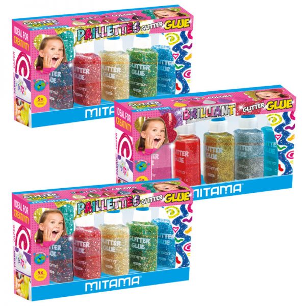 La colla glitter di Mitama è ideale per creare estrose decorazioni e disegni con effetto rilievo, ricchi di bagliori luminosi.
