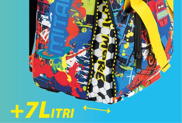 CAPIENZA REGOLABILE PER OGNI ESIGENZA. Grazie alle zip laterali la capienza dello zaino può aumentare da 21 a 28 litri.